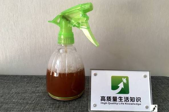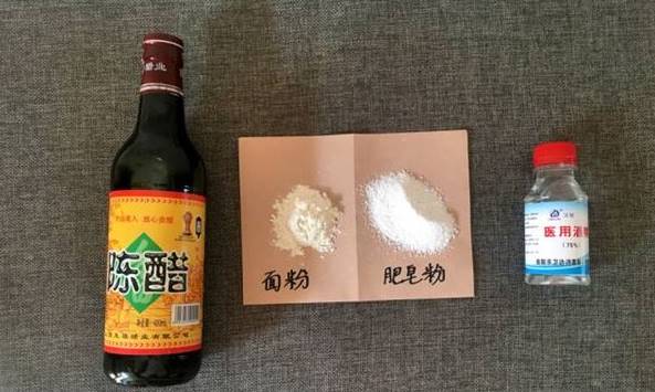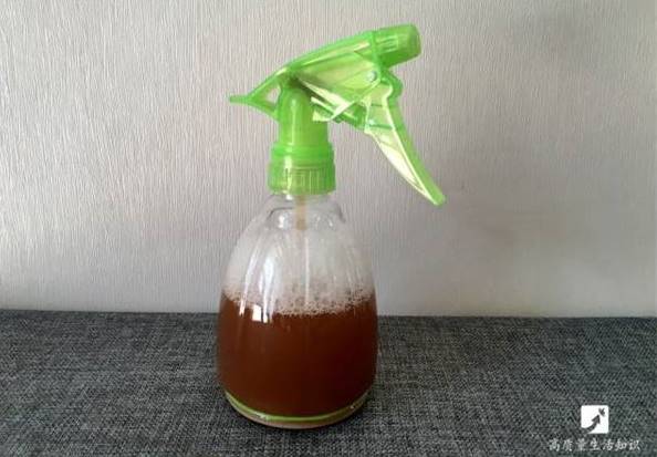 2.在噴壺中,先后倒入一瓶蓋的肥皂粉、半瓶蓋面粉、兩瓶蓋的陳醋,以及三瓶蓋的酒精。