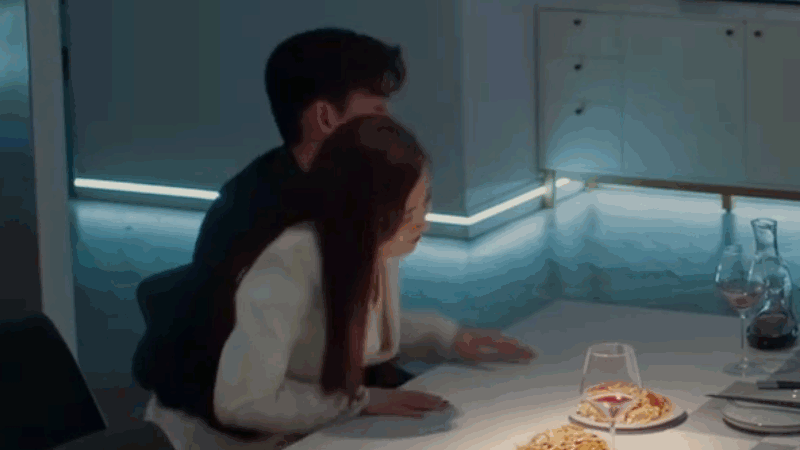 同時還有一場戲是男女主一同吃飯女主坐在男主大腿上面,從鏡頭可以明顯看到男主的手放在了女主的胸前,并且從衣服的褶皺情況更是能夠看到男主是用了「力道」的。