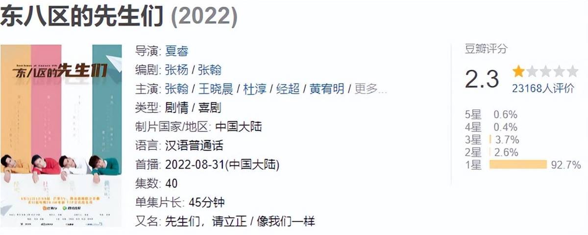 《東八區的先生們》這部劇可以說從播出開始,網友們就從來沒有停止過對它的謾罵和抨擊,甚至最后整部劇的評分也是只有可憐的2分左右!