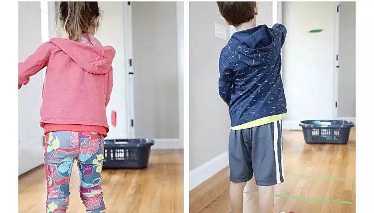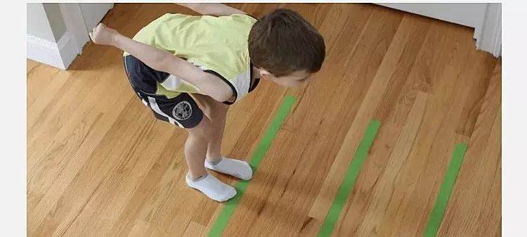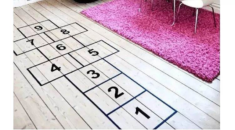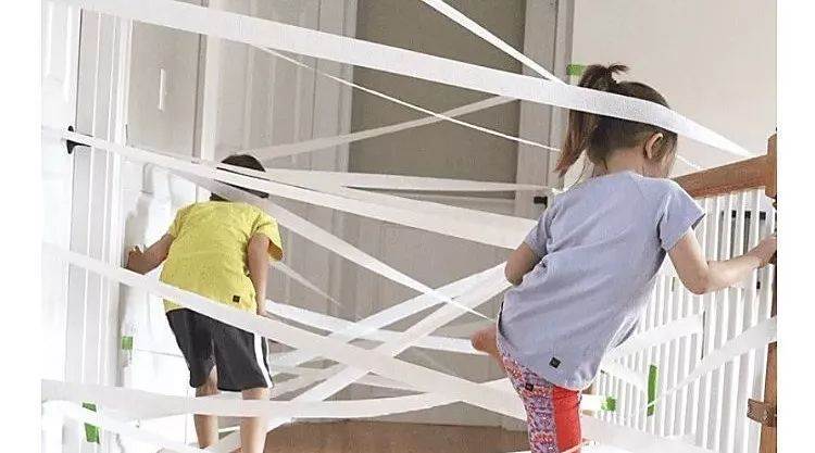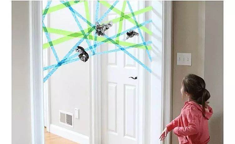 在家中門廊、樓梯、桌底下用膠帶或紙條拉防線(或紅線一類似于紅外線),地板畫些區域作為跳板(假裝地板是深淵,不能碰觸)。