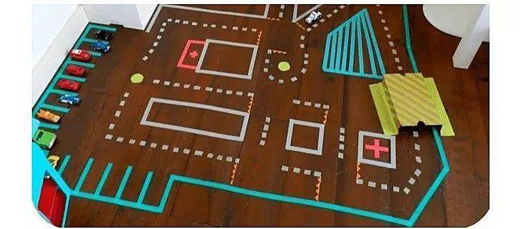 可以和小朋友用膠帶規劃自己理想的城市,培養孩子的規劃意識和空間想象力。