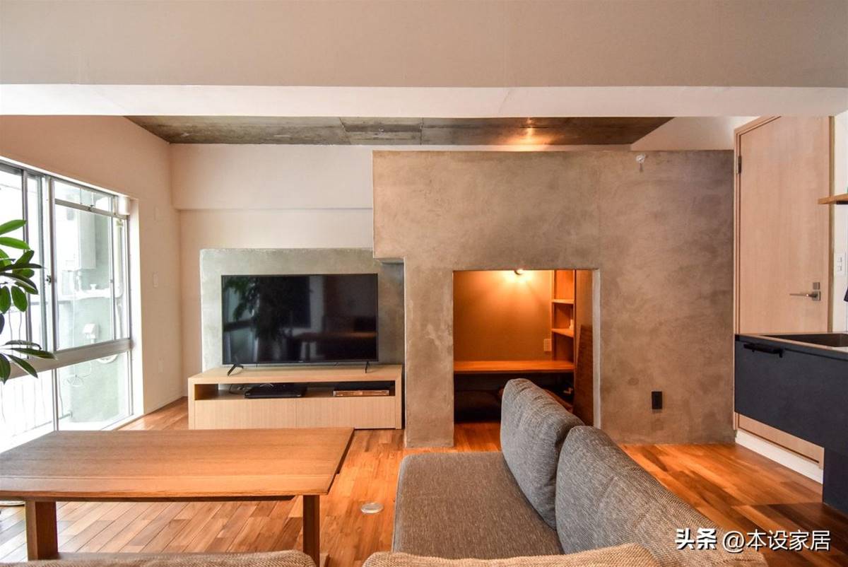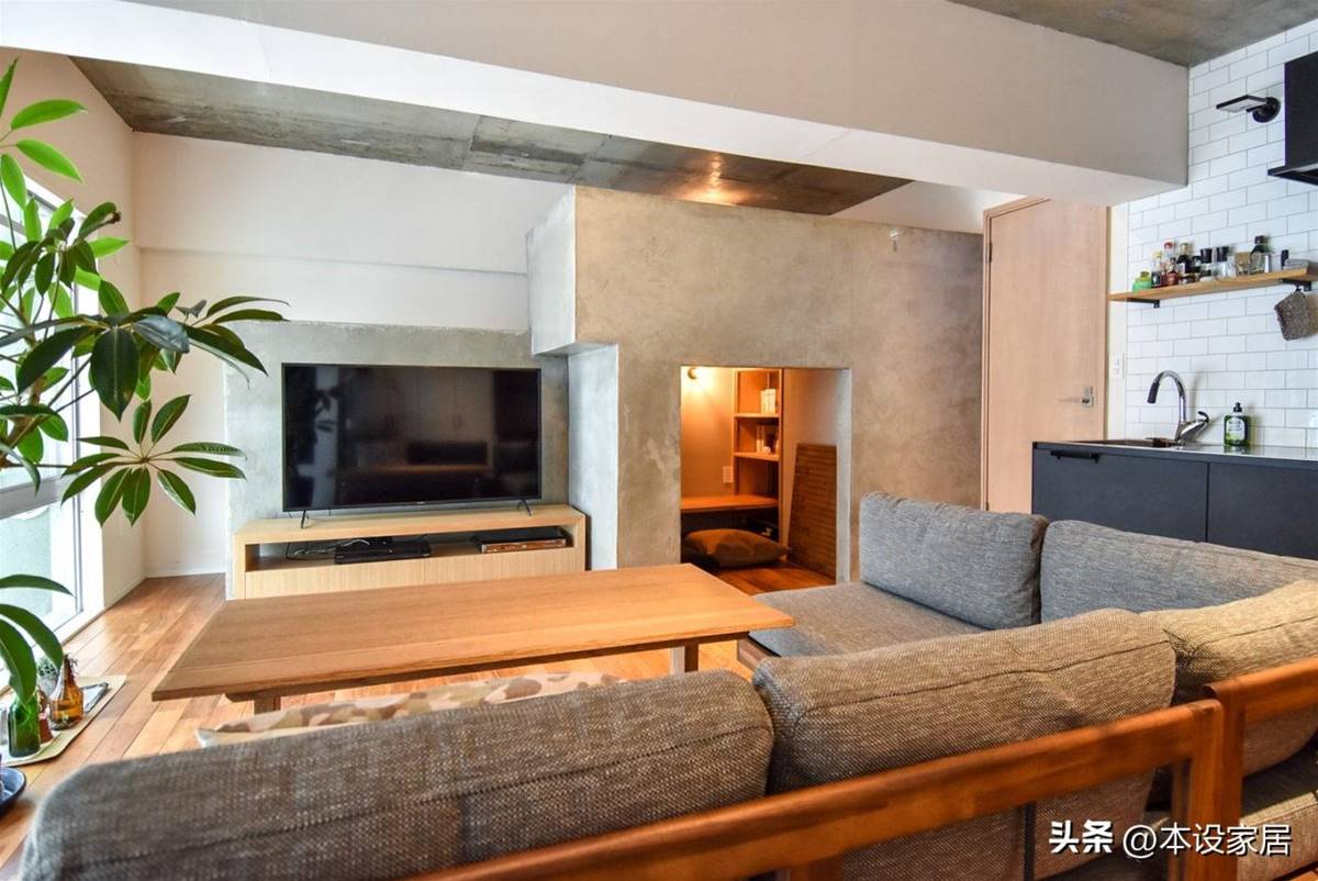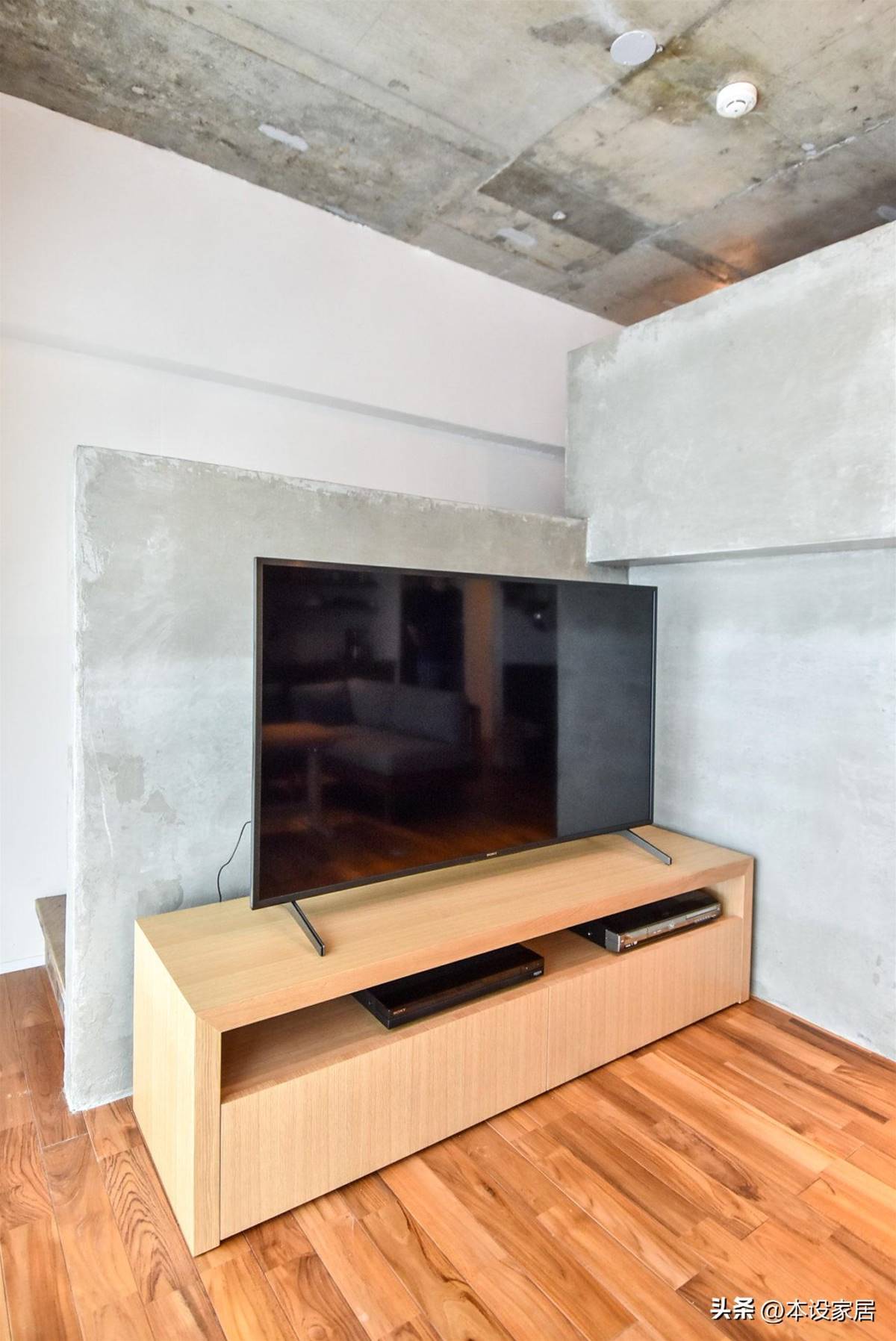 簡約生活自然無需繁雜累贅的電視背景墻,灰色水泥漆墻搭配簡約的原木色傢俱,清爽干凈,還能減少清潔時間。