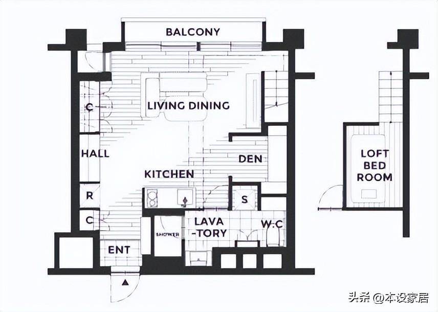 比較遺憾的是少了一個愜意的陽台,如果在這里看書、喝咖啡或日光浴,才能呈現出獨居生活該有的樣子。