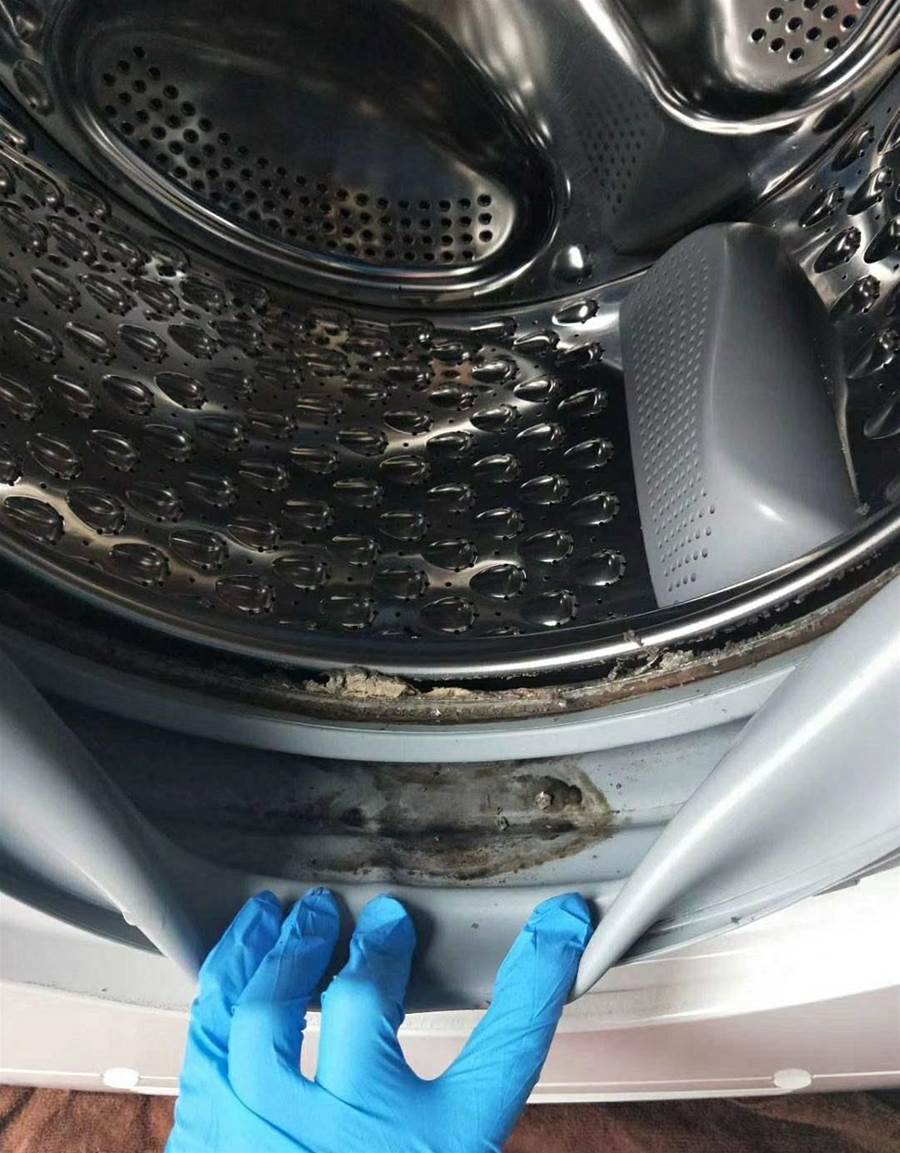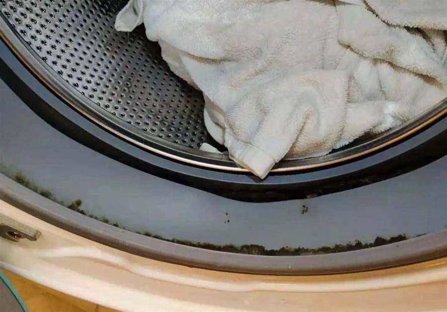 還有一個問題,因為洗衣機常常接觸自來水,在潮濕的環境之下,洗衣機的膠圈位置,總是會滋生細菌,從而形成一個個難看的霉垢。