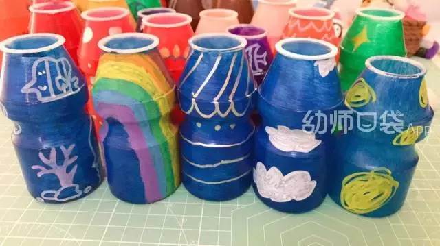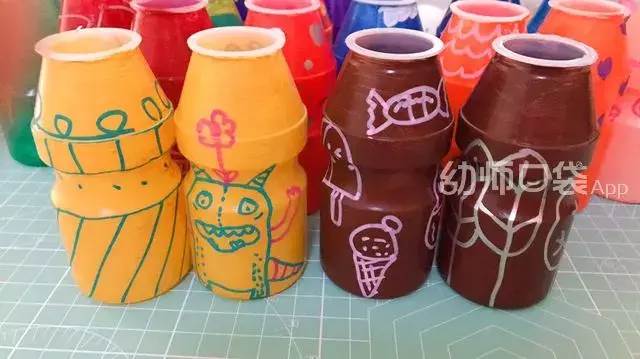 酸奶瓶、易拉罐老師們在剪裁時一定要注意磨平邊邊角角,以免留下安全隱患哦~
