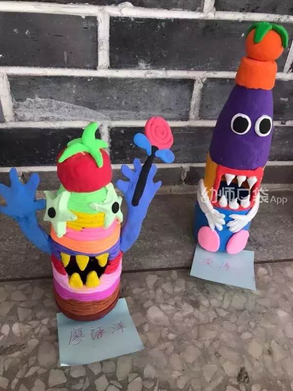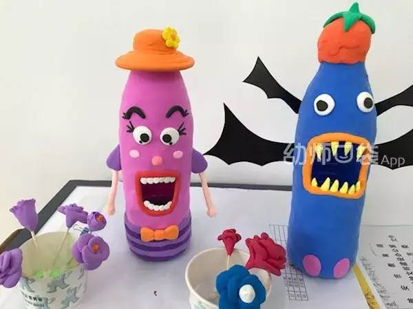 粘土裝飾瓶子,各種神奇有趣的表情都是孩子們的想象和創意呢~