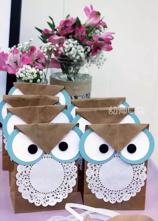 各種彩色卡紙、不織布就可以把普通的紙袋變成各種各樣的小動物~