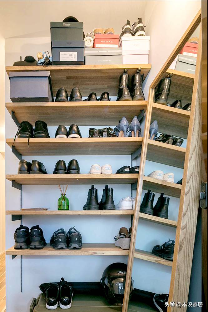 左邊是敞開式鞋架,所有鞋靴一目了然,出門很容易拿到。