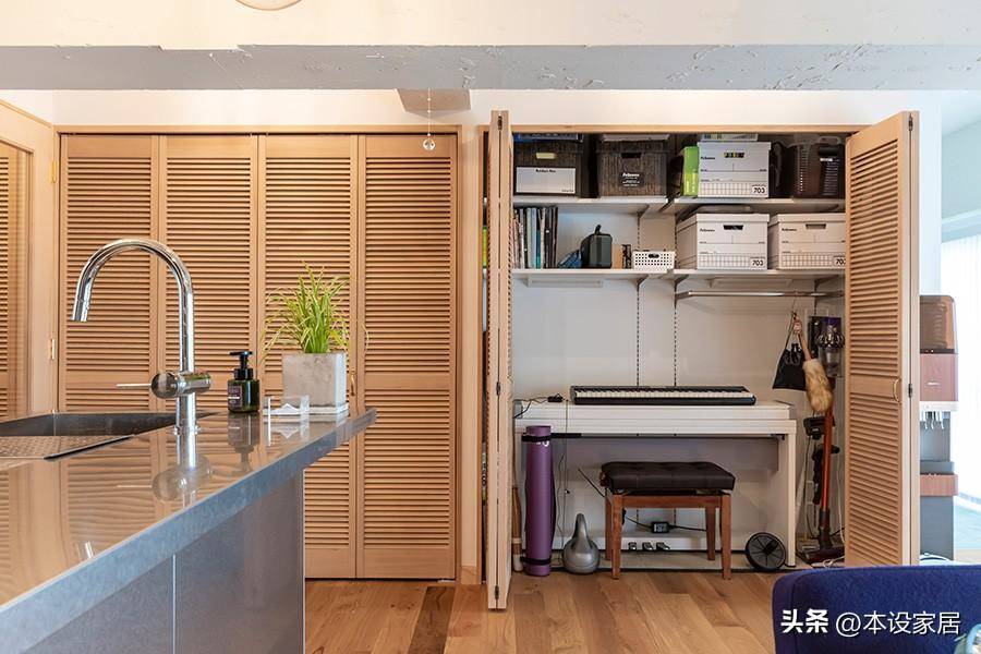 除了日常生活用品外,其中的一個儲物柜還藏有電子琴,只要關上柜門,清清爽爽。
