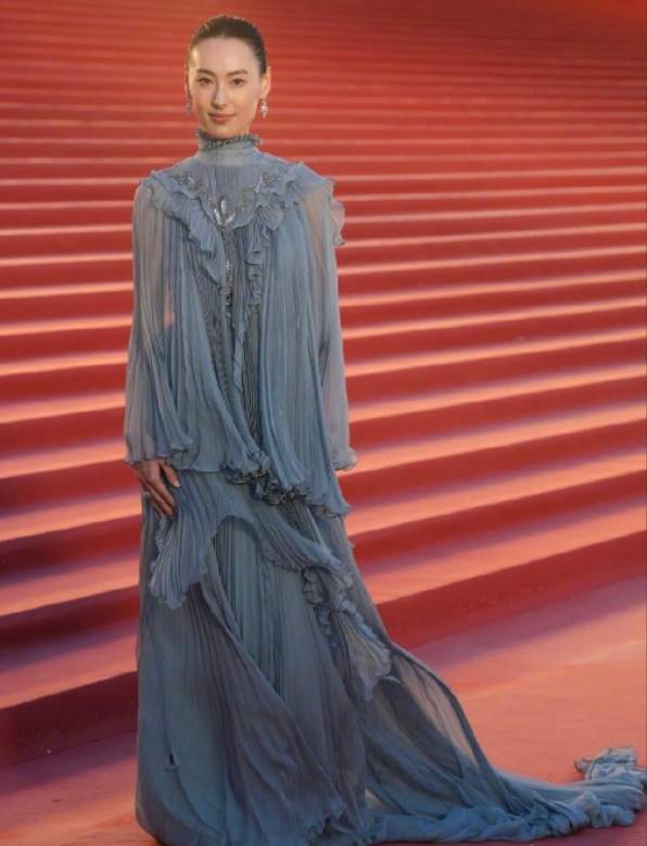 這一次梁洛施在活動現場當中依舊是那麼漂亮,身穿一身藍色薄紗禮裙的她既顯高貴又展現了身材,并且單單從狀態來看梁洛施完全不像已經生過孩子。