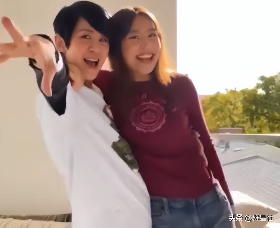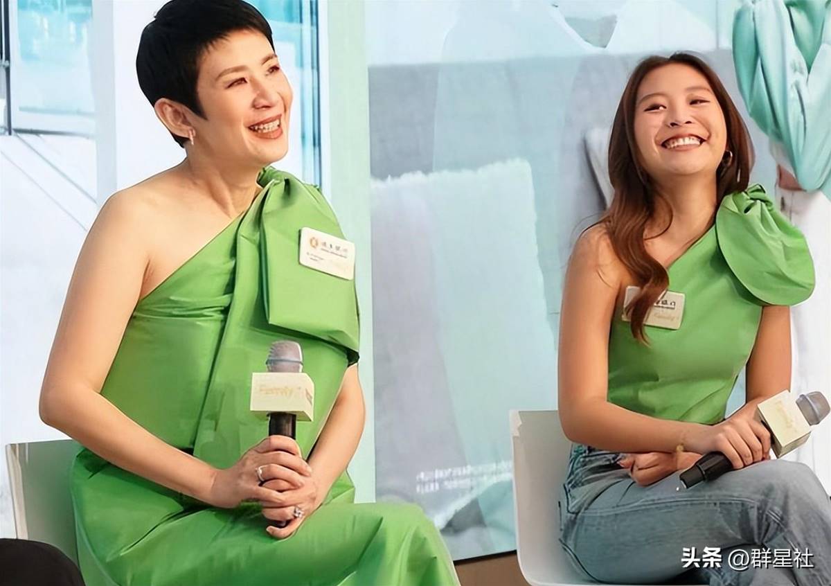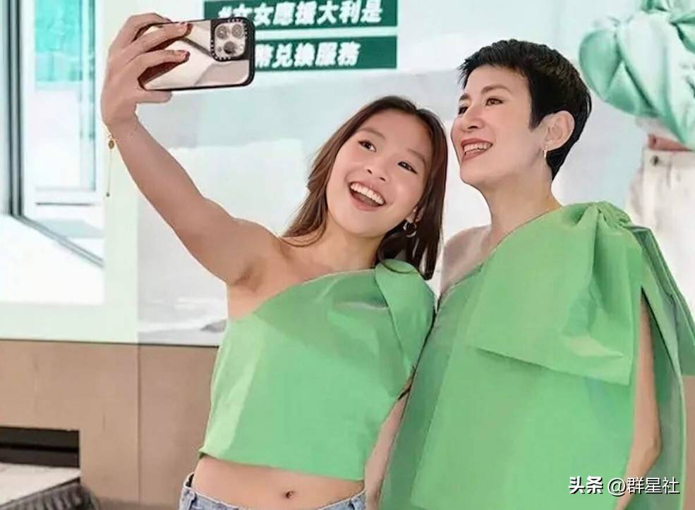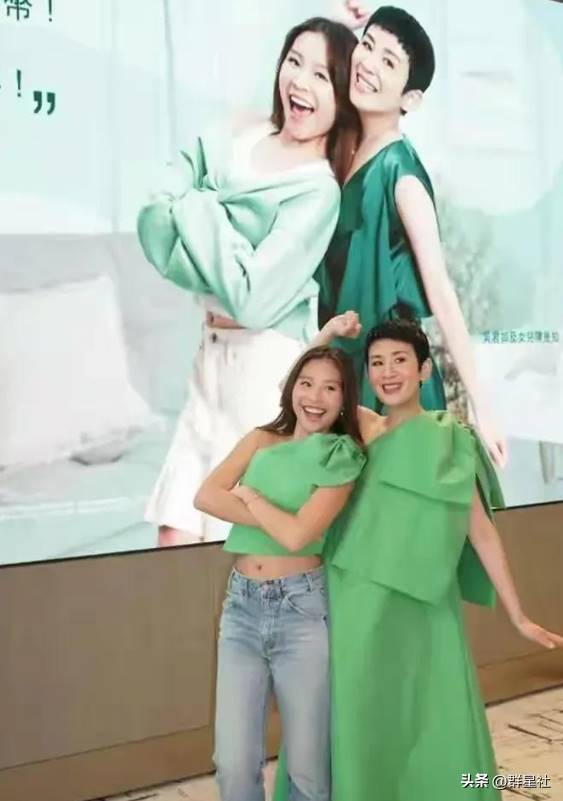 從曝出的照片中可以看到,母女倆都穿著綠色衣服,站在一起拍pose,看起來十分融洽。