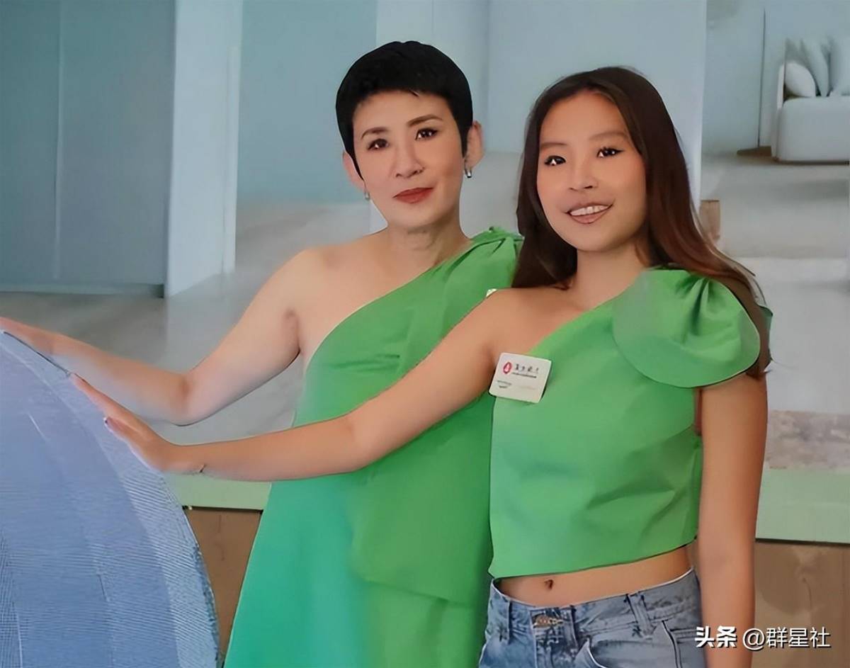 而女兒陳是知則穿著綠色斜身上衣,和母親的連衣裙相得益彰,也露出了她盈盈一握的小蠻腰,再搭配上牛仔褲,更顯得充滿年輕活力,長相也很不錯,整個人看起來還是非常上鏡的。