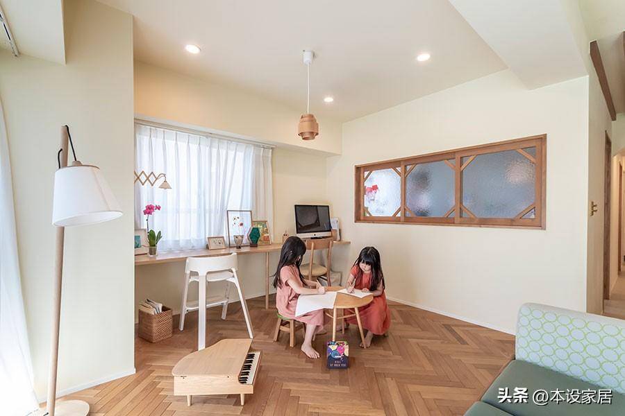 有娃的家庭沒有安裝電視機,而是靠墻布置了工作區和學習區,都說父母是孩子成長中的一面鏡子,父母平時為人處世和生活方式,時刻都影響著孩子,放下手機,一起學習,這也是陪伴的最大意義。