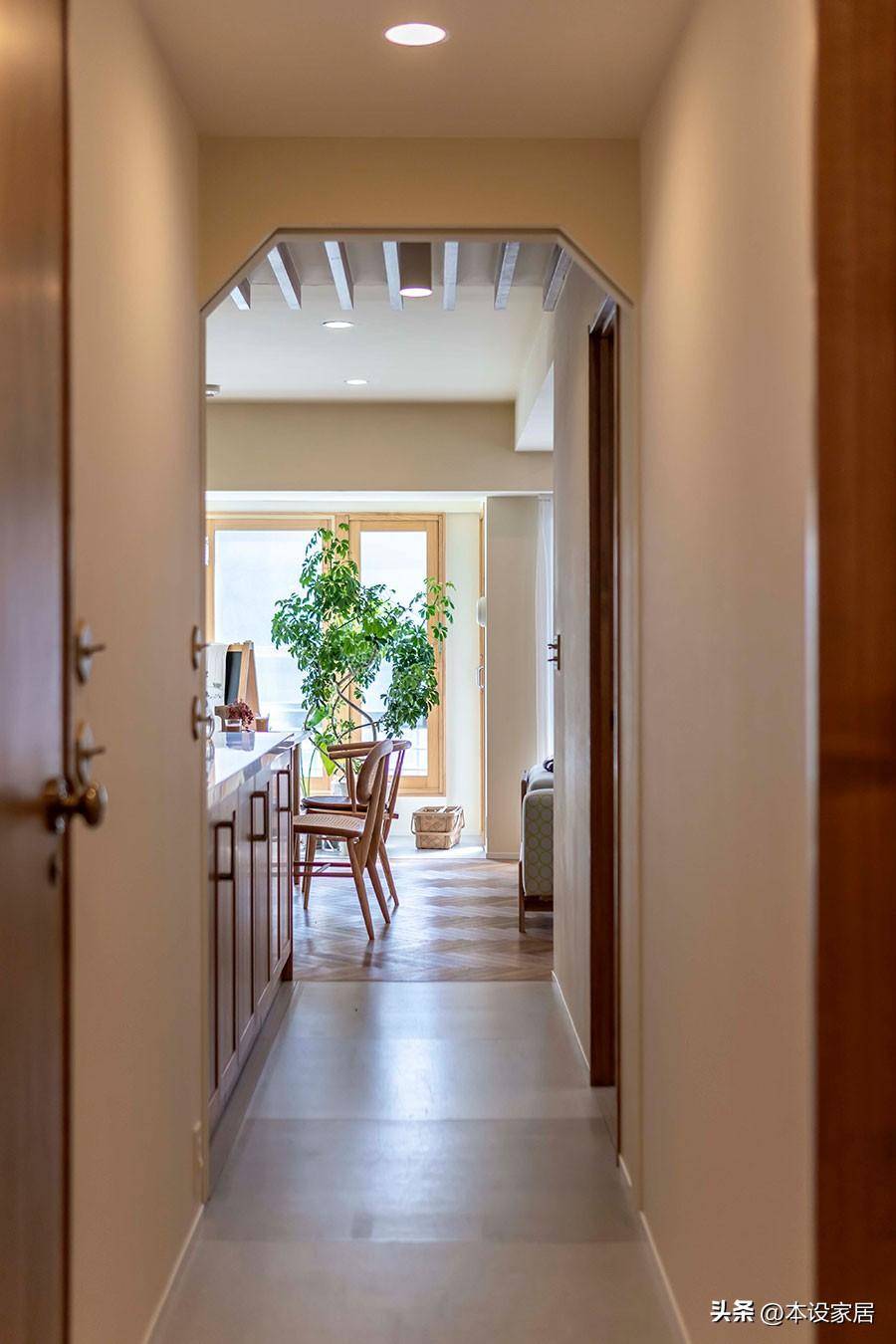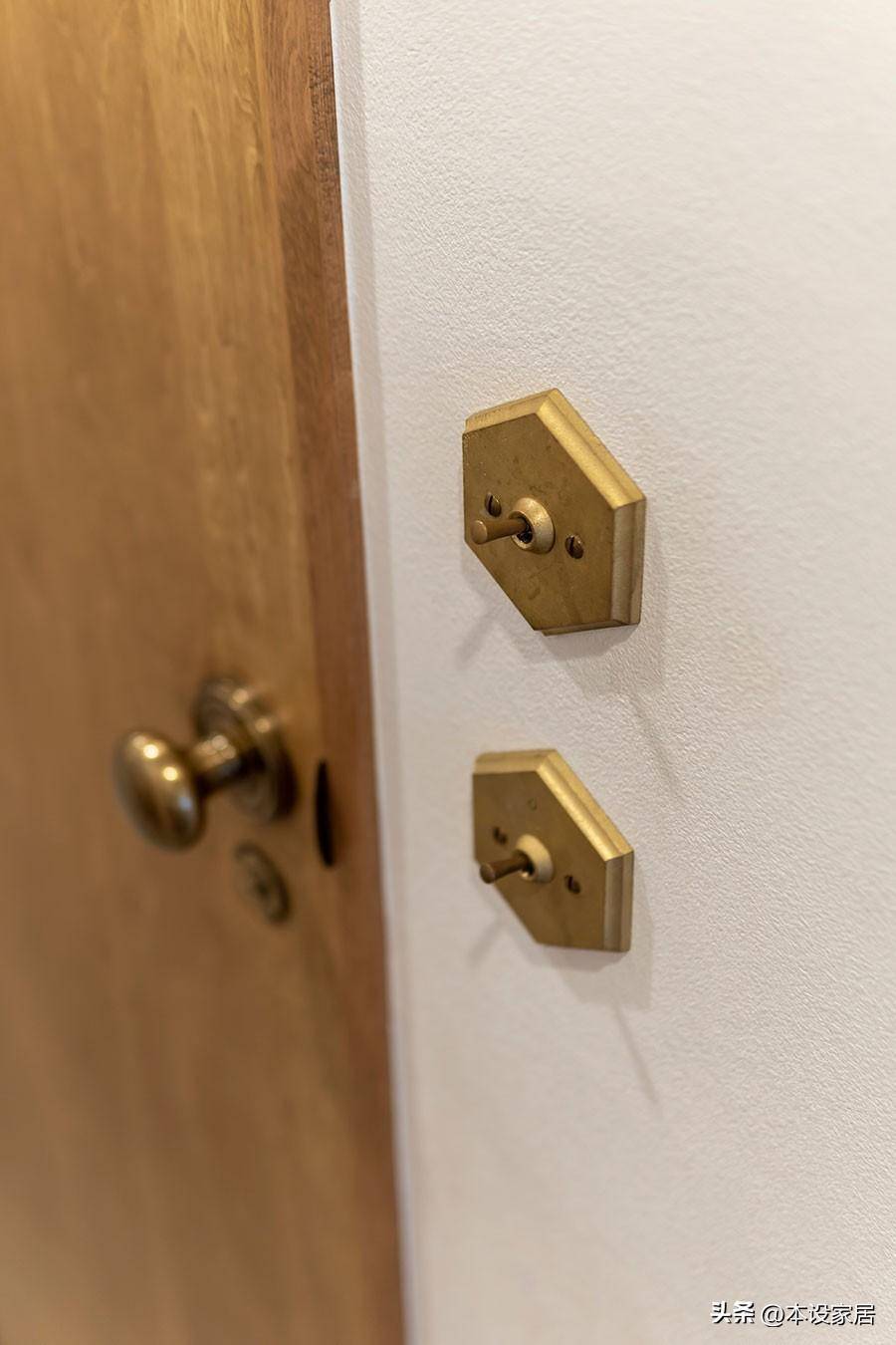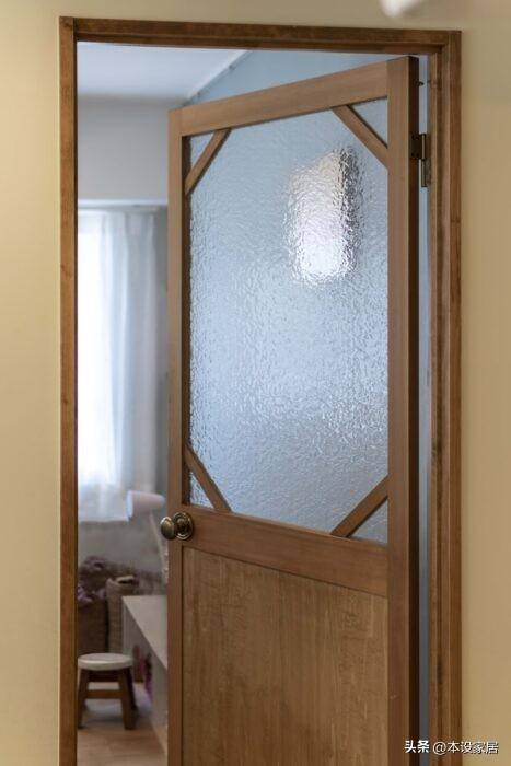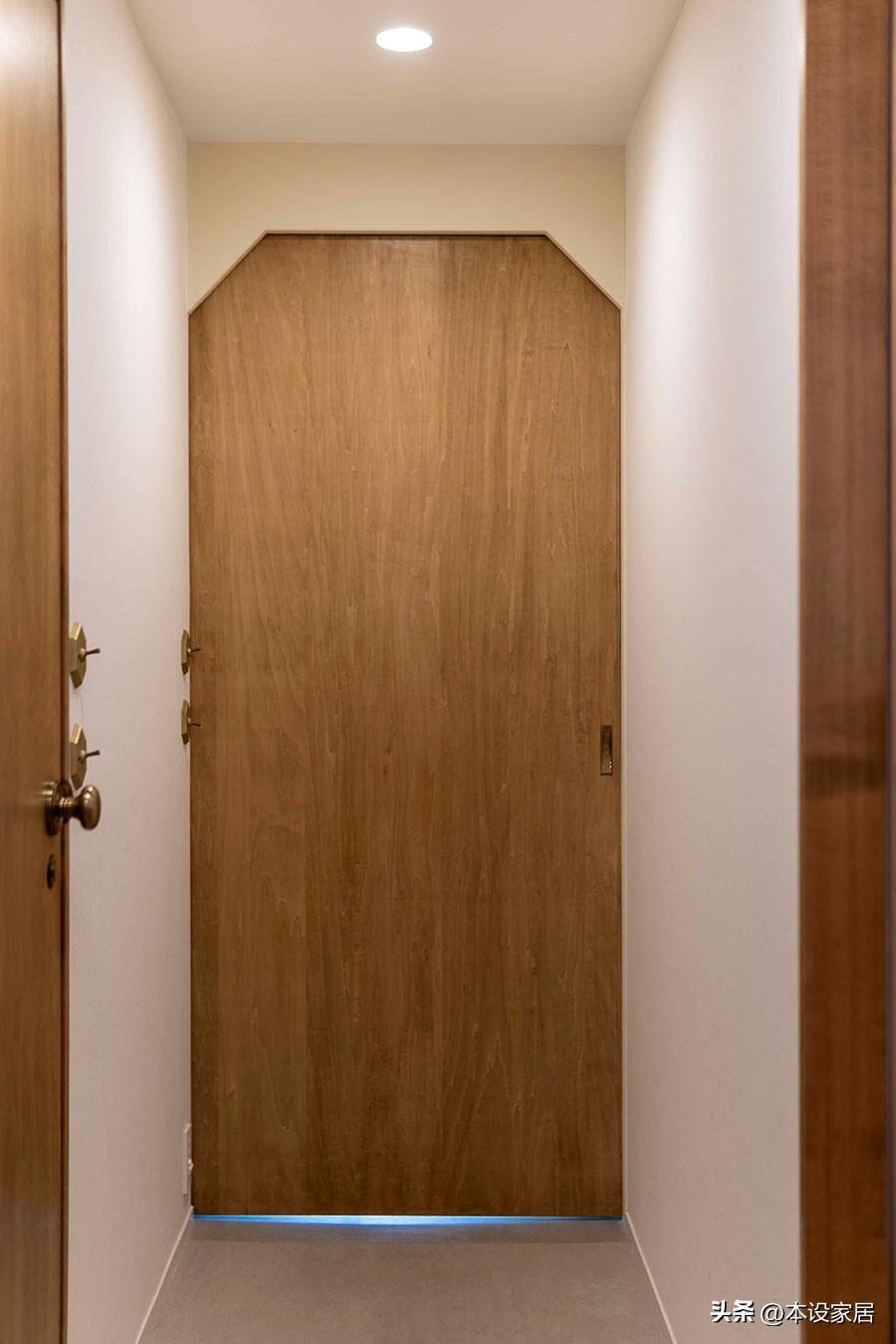 公區和私區之間有一道門,動靜分離,木門的頂部切角設計很有個性,也是這個家不可缺少的元素。