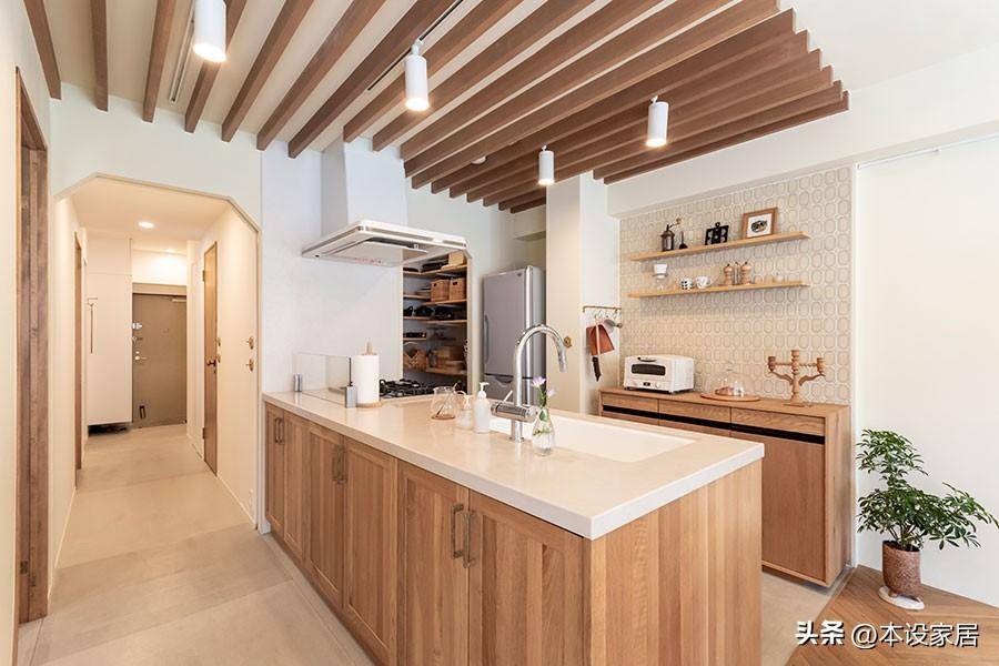 II型的廚房設計簡潔明了,動線順暢,轉身便能完成取菜-洗菜-切菜-炒菜動作,合理的布局讓人省心省力。