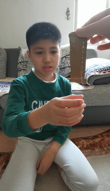 玩法:大人利用一塊斜板勻速放小球,讓孩子在對面用紙筒去蓋球。由于從斜板上滾下的球速度很快,就需要孩子專心致志的看,并提前做預判,玩起來還是很刺激的。