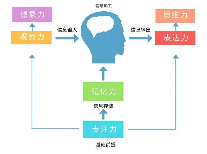 只有專注力好,孩子才可能注意并接收到更多的外界信息,然后把這些信息傳遞到大腦,進行存儲和加工,才有后面的理解、記憶、想象和表達。