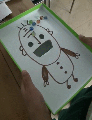 對于4歲以上的大寶來說,可以控制小球,滾入丁老頭的眼睛里。