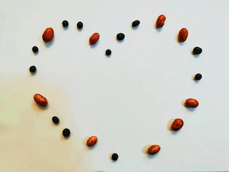 劃出一定數量的大豆和小豆,罩在容器下面,打開讓孩子用眼睛去數,大豆小豆分別有幾顆,不能用手去指著數。