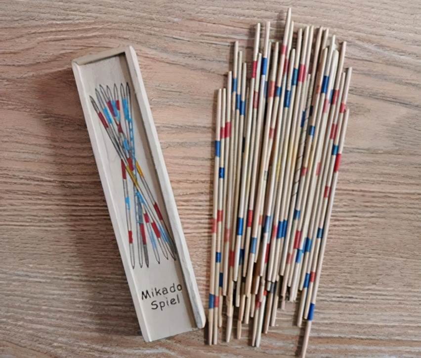 手持木棍,向桌子上一撒,這樣木棍就層層疊疊交錯在一起了。兩個人PK,看誰能不碰到其他木棍,把桌子上的木棍一根根拿出來,或者挑起來,最后看誰拿的木棍多,誰就贏。