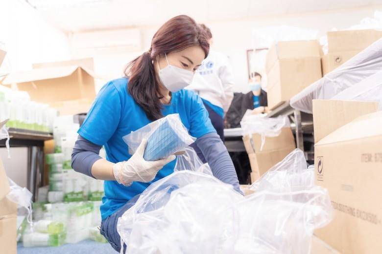 之后郭晶晶更是親自前往工廠參加口罩生產的工作。
