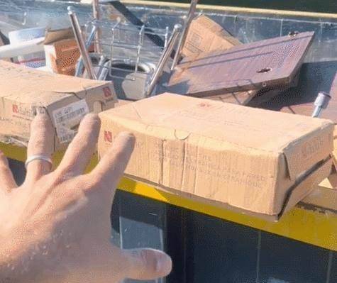 他曾經在一個垃圾箱里找到很多建筑材料,基本都是裝在包裝箱里,碼得整整齊齊的貨。