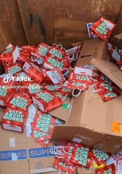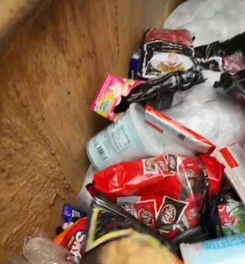 他們也找到過其它食物,因為食物價格太低了,商場直接把退貨扔掉了,這些食物在垃圾箱里也都是包裝完好的。