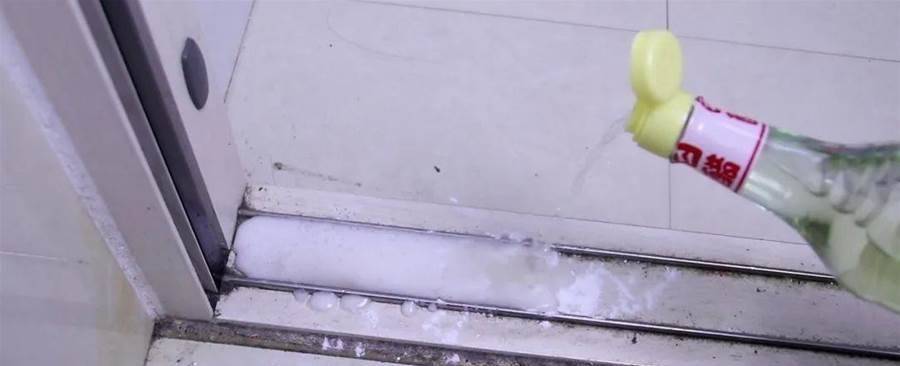 這個時候我們就可以用上一個硬幣,我們先在墻角的位置倒一點小蘇打,然后再往小蘇打上倒一點白醋。
