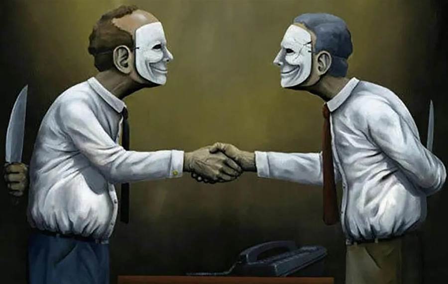 這種人唯利是圖,他們常常采取背叛他人、出賣他人、陷害他人的卑鄙手段,來獲取不正當的利益。所以越是滿口「仁義道德」的人,你越要小心,不要被他們的甜言蜜語或花言巧語所迷惑、所蒙蔽。