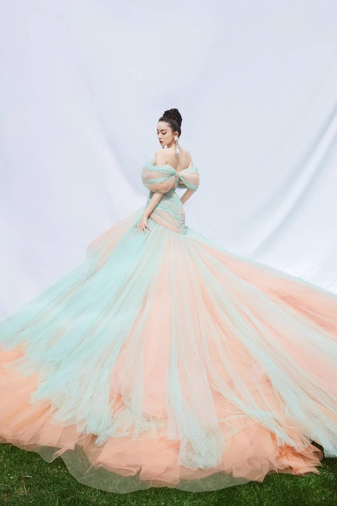 并且這套禮服還是混色同時非常蓬松的,尤其是裙擺更是拖了非常長的距離,整個人是顯得既火辣同時又有公主的貴氣。