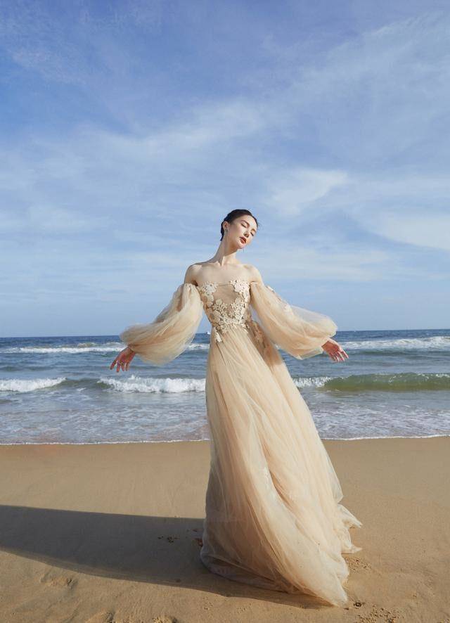 而且可以看住這整套衣服都是和高葉的氣質非常契合,尤其是從腰間往下顏色的變化更是讓她多了寫端莊的一位,并且收腰的設計也讓高葉的美好身材能夠盡情展現。
