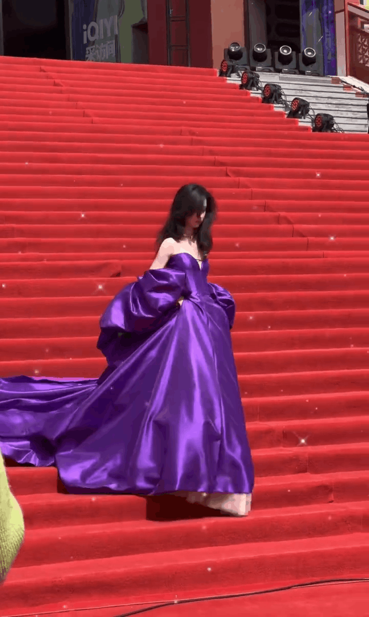 而本次北京國際電影節當中,陳都靈也受邀出席,可以看到她身穿一襲紫色抹胸的