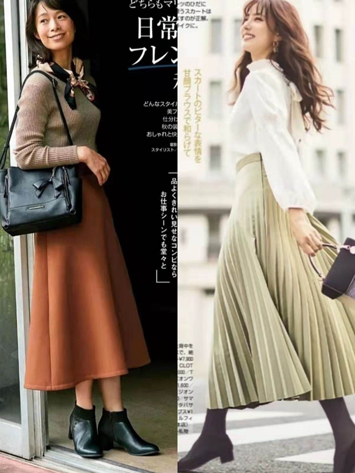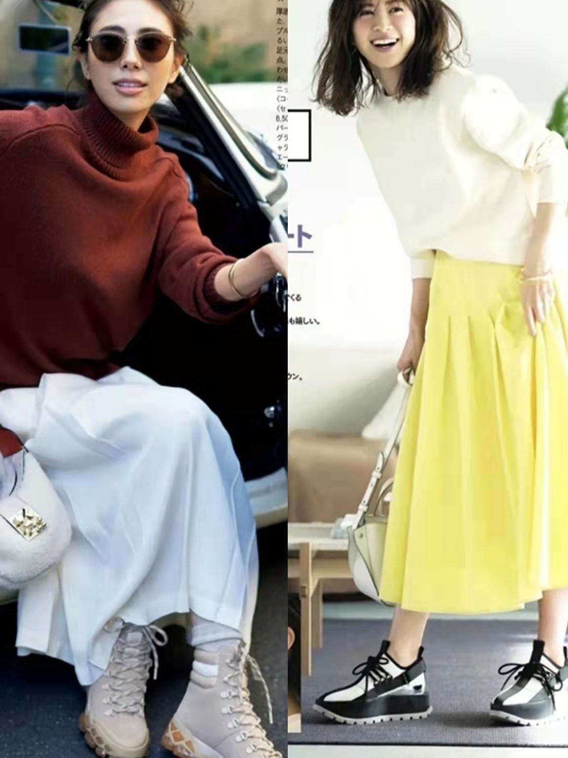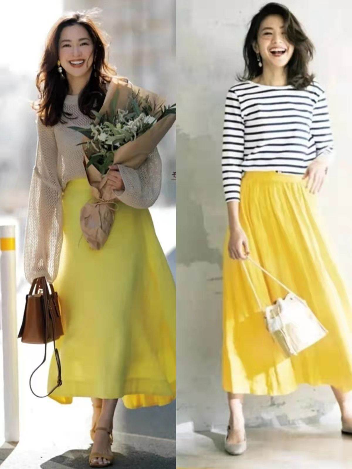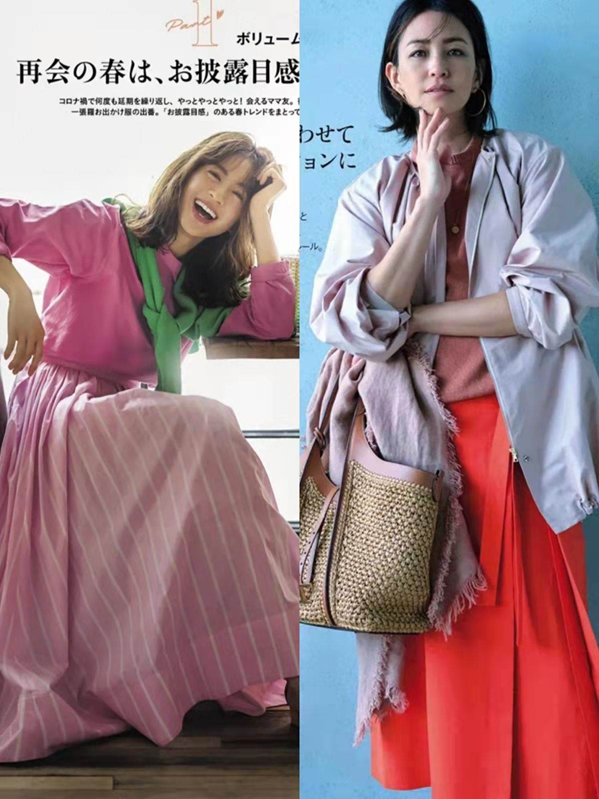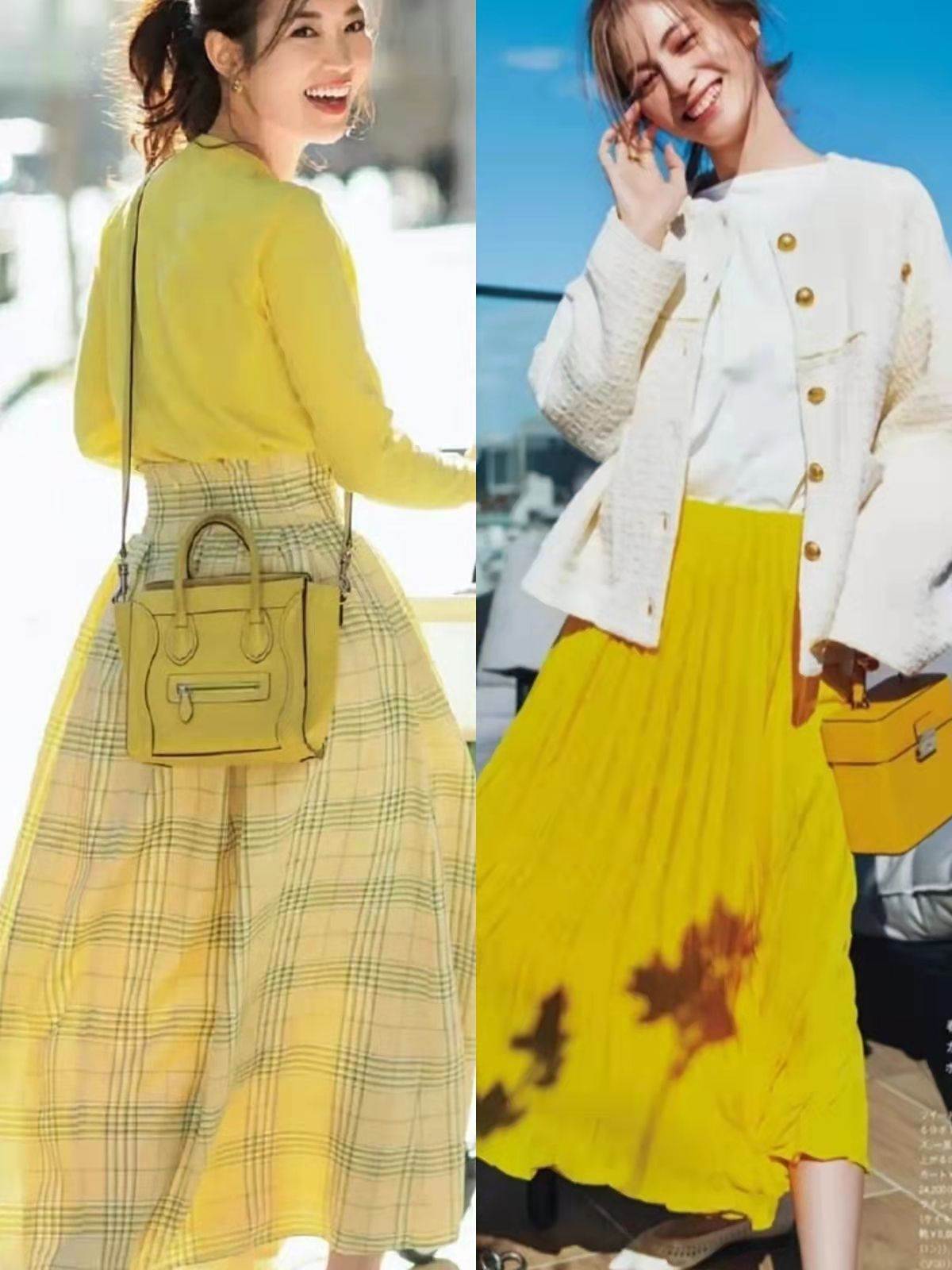 在日雜春季穿搭中,檸檬黃、玫紅色、粉色、嬰兒藍色過膝裙都比較常見,大家需要根據膚色、穿衣風格做出選擇。