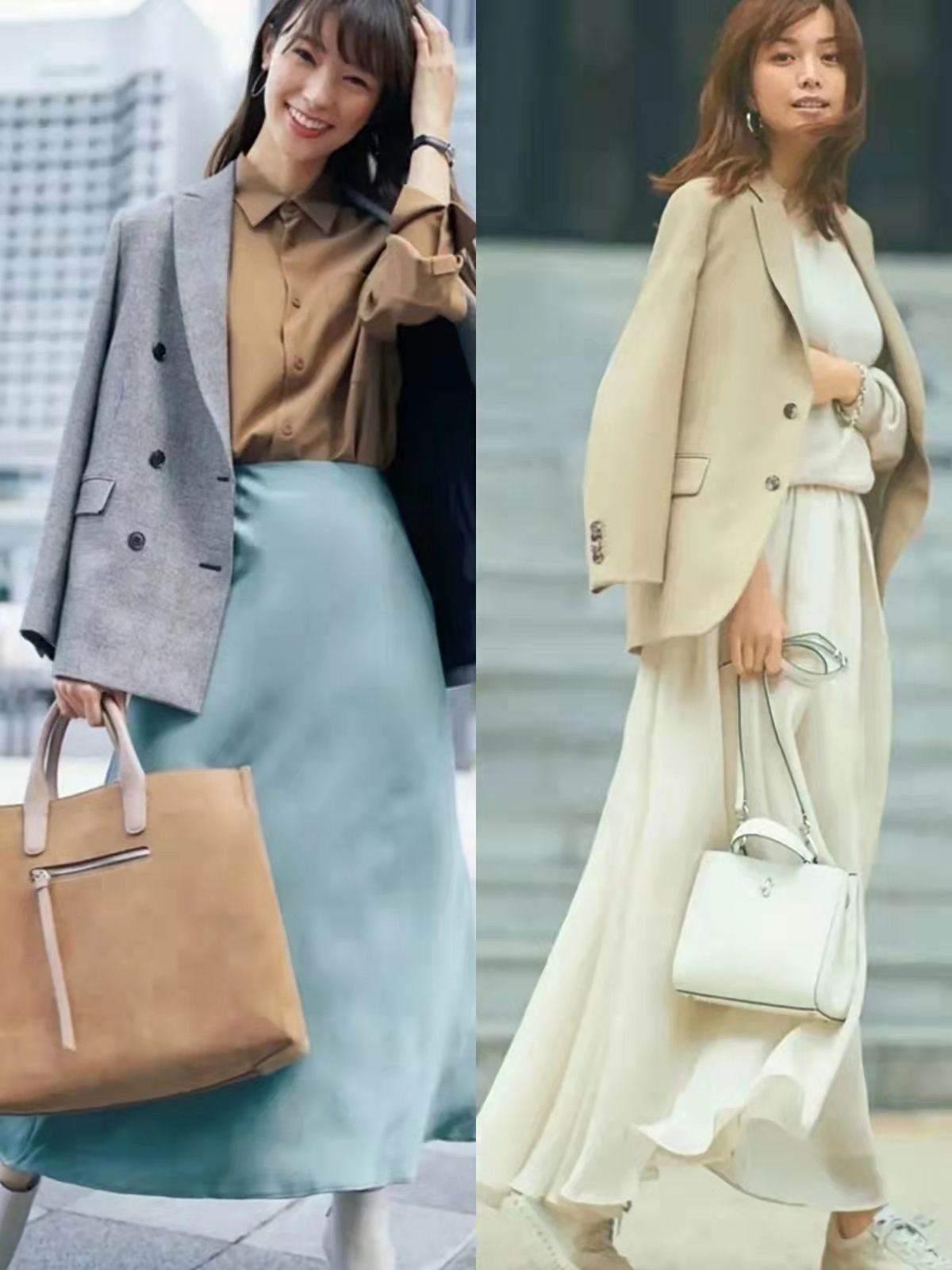 春季外套+裙裝稱得上是早春最簡約溫柔的搭法之一,從西服到牛仔外套,再到長風衣,都很適合普通人。