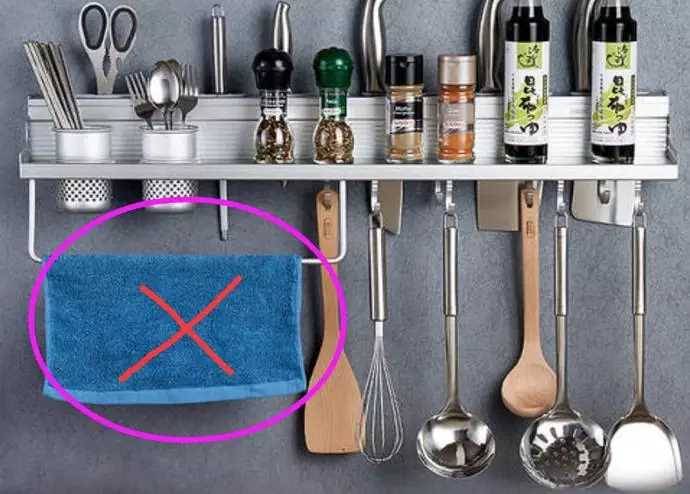 廚房中還有的人習慣直接把毛巾懸掛在廚房中,要知道這裡是我們經常做飯的地方,每天使用的話,肯定會產生大量的油煙。這些頑固的油煙進入到毛巾當中肯定會出現異味和污垢,不僅擦不幹凈還會滋生細菌,所以,大家可不要把毛巾直接擺放在廚房中了。