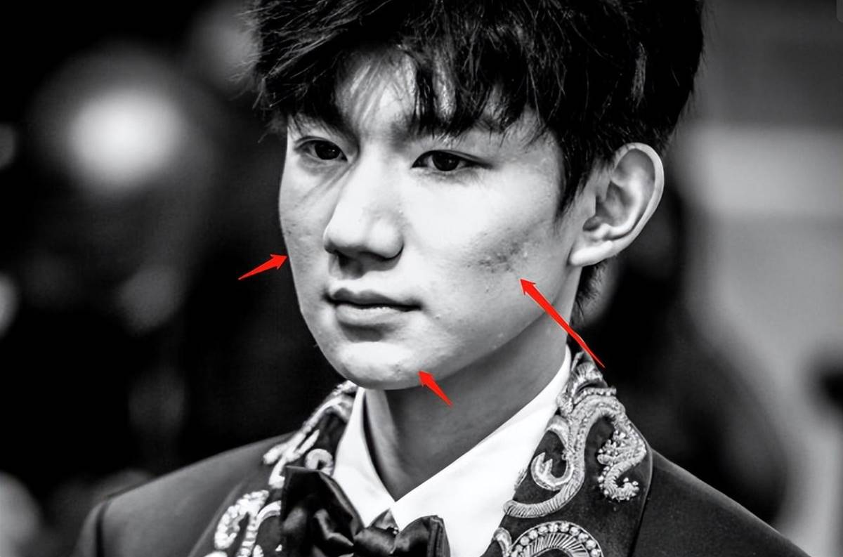 但實際上他卻是「三小只」當中年紀最小的,而且在一些活動現場如果鏡頭拉近的話,更是可以看到他臉上的那些「坑坑洼洼」,同時易烊千璽的抬頭紋也是比較嚴重的。