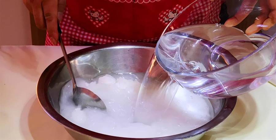 3.趁浸泡大蒜的時間,我們再調個糖醋汁:我這是8斤大蒜,準備8斤的白米醋,加入2斤的白糖攪拌至化開,再加入4小勺的鹽(家里平時喝湯用的湯勺),將鹽和白糖完全攪拌化開即可。這樣調好的糖醋汁可以直接來用,是不需要上鍋煮開再用的。