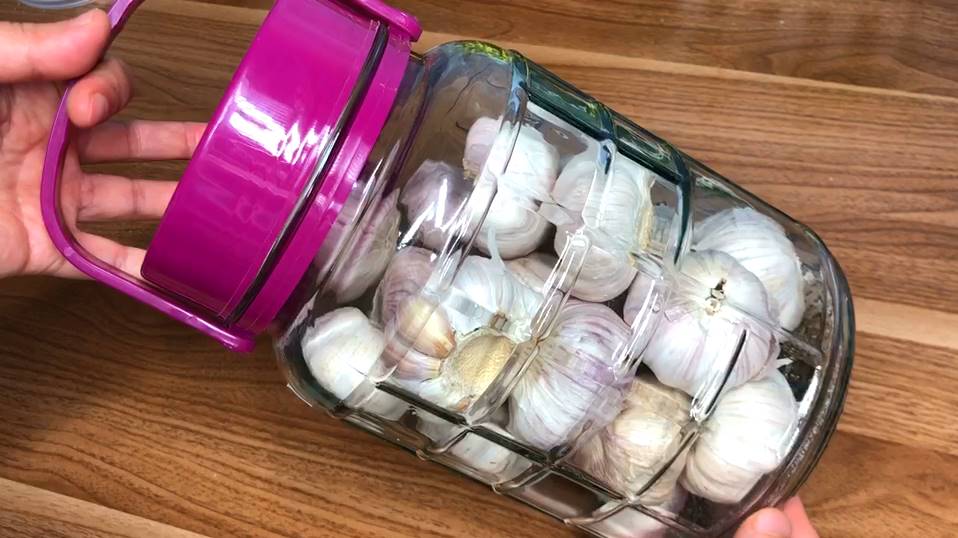 把買回來的大蒜分成一粒粒的蒜瓣,然后找一個密封罐,把剝好的蒜瓣放入到密封罐子中,蓋好罐子即可。