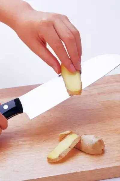 5、砧板、刀具切菜切肉時間長了之后總會留下一些異味,可以試試用生姜反復的摩擦刀片,異味就能消除了。