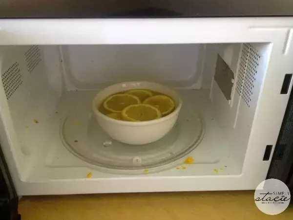 8、微波爐也是很臟的,但解決的辦法卻很簡單。一碗水,里面加上一些檸檬片和醋,放進微波爐高火人、加熱,再打開擦一擦四壁,很簡單就打掃干凈了。
